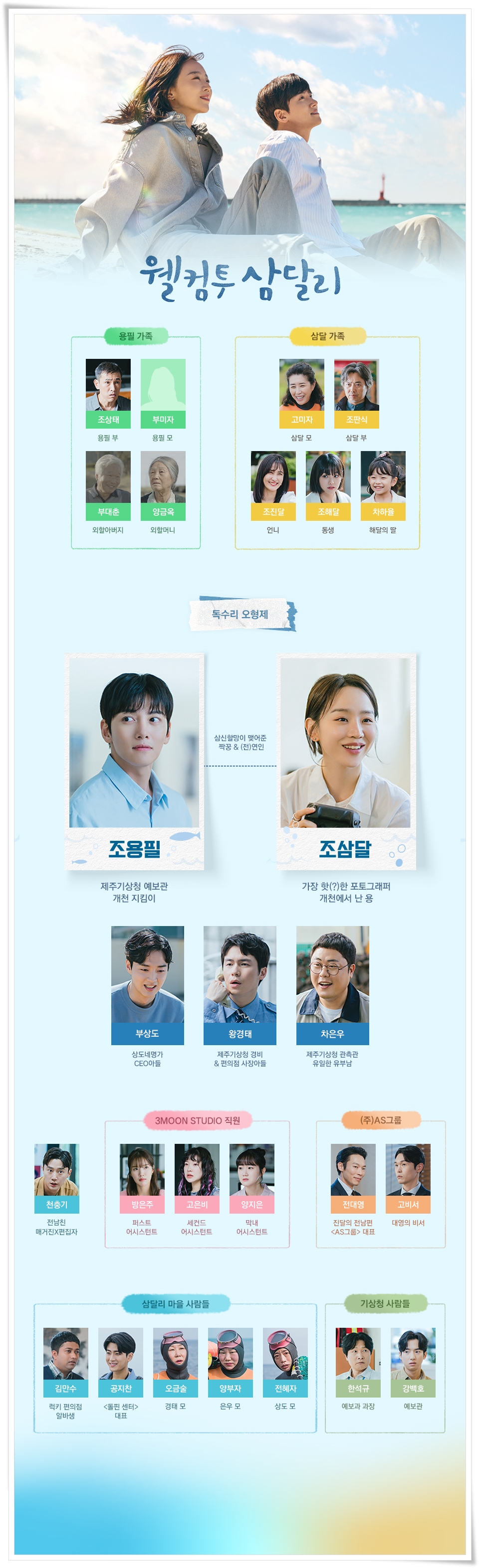 조용필 역할_지창욱 / 조삼달 역할_신혜선 / 고미자 역할_김미경 / 조판식 역할_서현철 / 조진달 역할_신동미 / 조해달 역할_강미나 / 조상태 역할_유오성 / 양금옥 역할_김자영 / 부대춘 역할_유순웅 / 부상도 역할_강영석 / 왕경태 역할_이재원 / 차은우 역할_배명진 / 전대영 역할_양경원 / 고철종 역할_강길우 / 공지찬 역할_김민철 / 오금술 역할_백현주 / 양부자 역할_김미화 / 전혜자 역할_윤진성 / 김만수 역할_스잘 / 한석규 역할_이태형 / 강백호 역할_김현목 / 방은주 역할_조윤서 / 천충기 역할_한은성 / 고은비 역할_김아영 / 양지은 역할_이도혜, 차하율 등이며 특별출연도 기대됩니다.